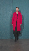 Classic one-button lined coat with side vents, diagonal welt pockets. Standard set-in sleeve Topstitched collar, reversed fronts. French Metal button. Back length 104cm.
