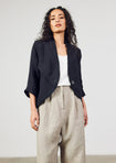 Fully lined fitted jacket with ¾ sleeves. Flattering neckline, curves down front to lower back. Feature’s several layers of raw-cut bias French Cotton Tulle inserted around neckline, hem, sleeves and back godets. Back length 65 cm