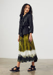 Unlined jacket with tie belt fluted collar, diagonally folded & tucked front panels. Full length roll up sleeves. Back length 127 cm