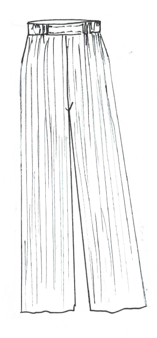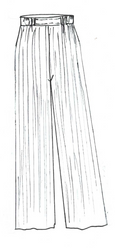 Straight leg pant on encased elastic waist. Length from under waist band 101 cm. Vertically crinkled Japanese Travel fabric