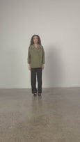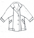Urban chic unlined jacket in distressed look Japanese cotton. Dolman sleeve. Double breasted. Buttoned opening on sides. Tabs on centre back yoke. Diagonal welt pockets. Back length 71cm.