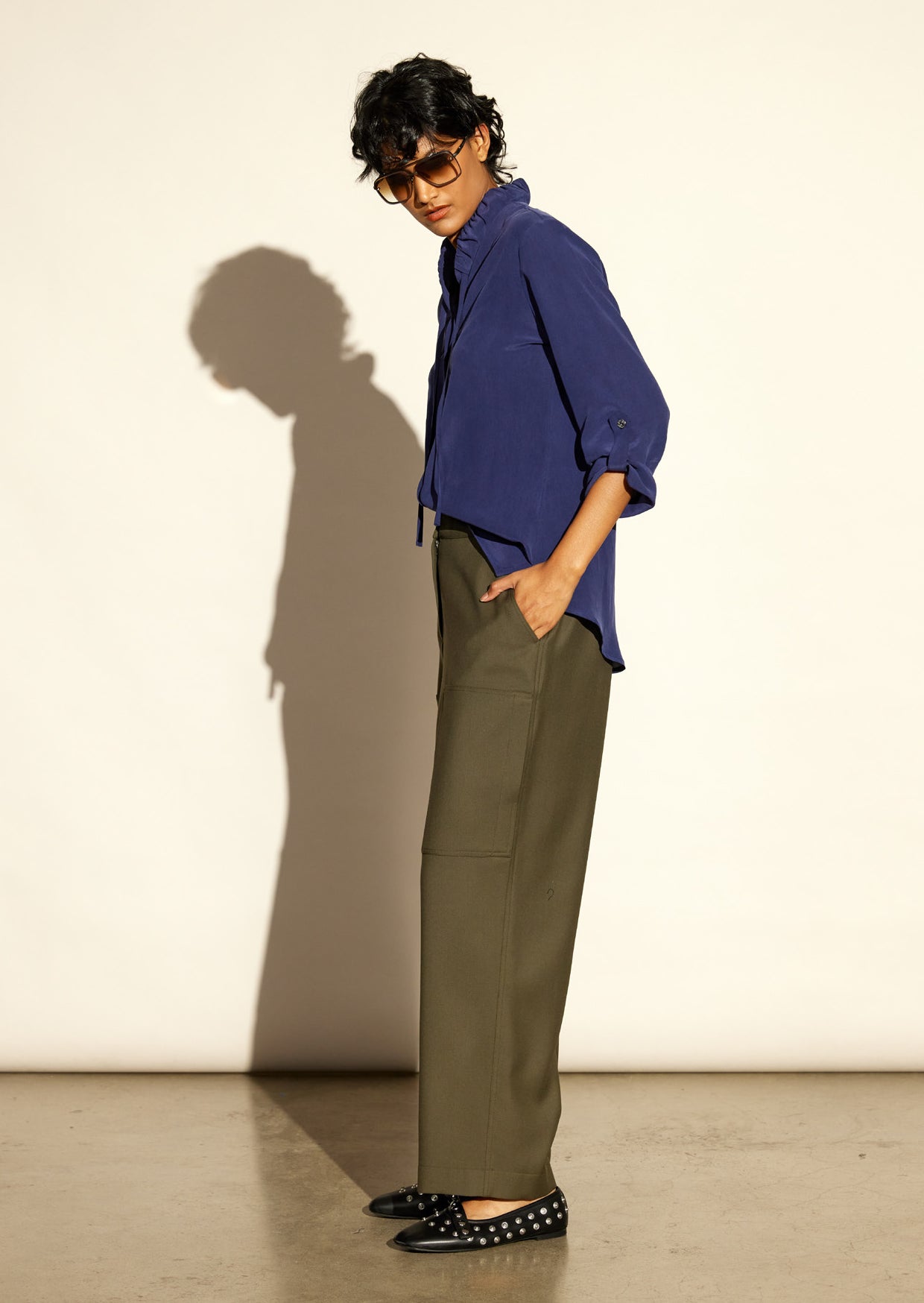 - Slightly low waisted slouch pant