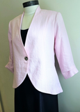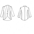 Lined 3/4 sleeve jacket with curved front & panel seams. One (french) button fastening. Tucks in sleeves. Back length 64 cm. Two piece sleeve.