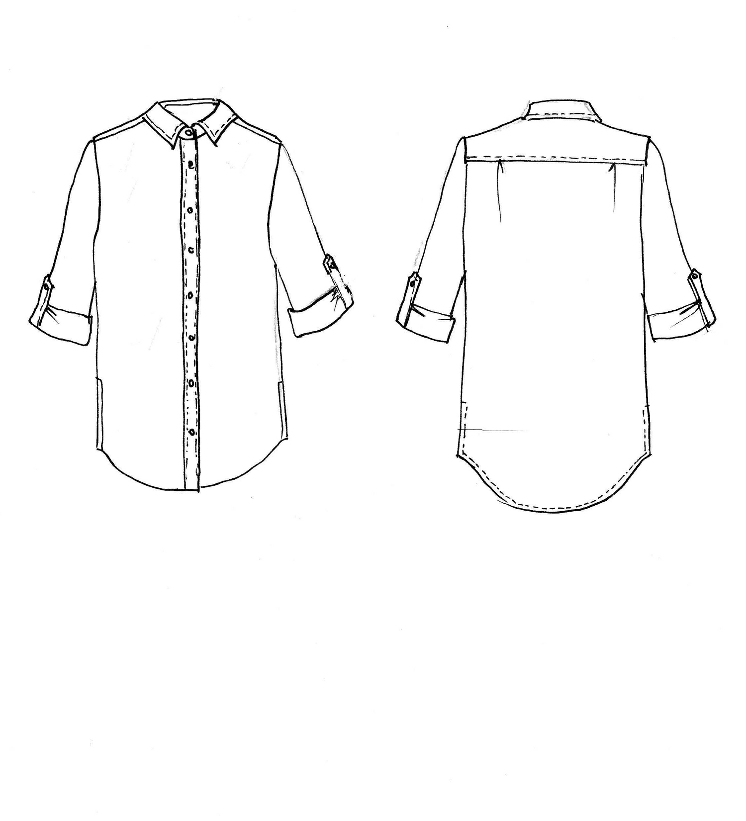 Classic fit shirt with back yoke, shirt tails, shirt collar on stand & 3/4 roll up sleeve with tab & button. French buttons. Centre back 81 cm.