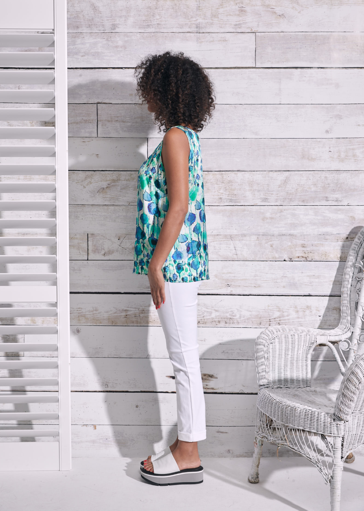 Slim fit with narrow leg. 7/8 length, 70cm in leg with cuffs. Fly zip with single metal button. Fitted waistband with front pockets. Belt loops with plain back.