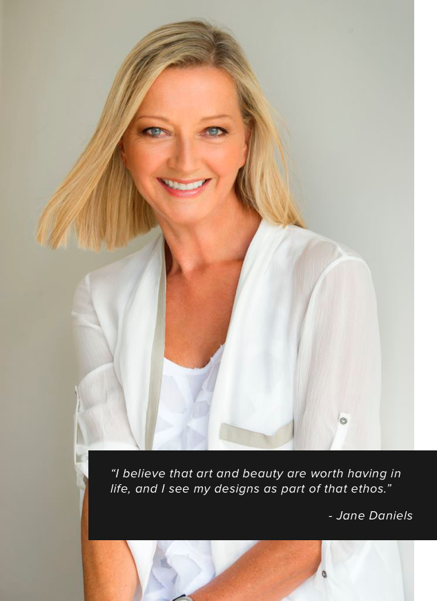 Jane takes an active role in every design. The production is a team effort and as Jane’s business has expanded, so has her team. Fresh faces and new experiences fire her creativity.